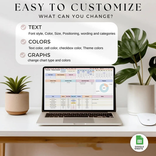 Streamline your daily life with this all-in-one digital task management system. This Task Tracker automatically organizes your tasks, tracks your progress, and highlights upcoming or overdue items—so you never miss a deadline again.